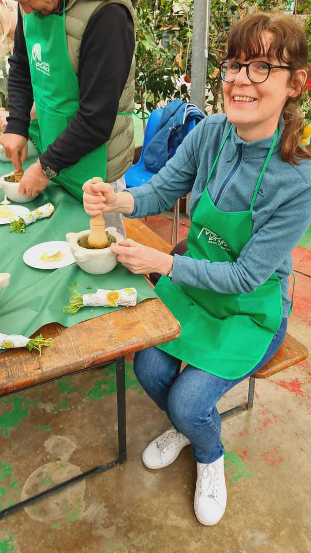 Die Riviera di Ponente, besonders San Remo, zeigt uns ein anderes Ligurien. Blumen- und Obstanbau, lange Promenaden, berühmte Casinos. Von unserem Hotel für weitere 3 Nächte erkundeten wir Cervo und Albenga, Nizza in Frankreich und Monaco. Ein Pesto-Kurs gibt uns jetzt die Fähigkeit, ein exzellentes typisch ligurisches Gericht selbst herzustellen. Zusammen mit Trofie (Nudelform) super lecker!